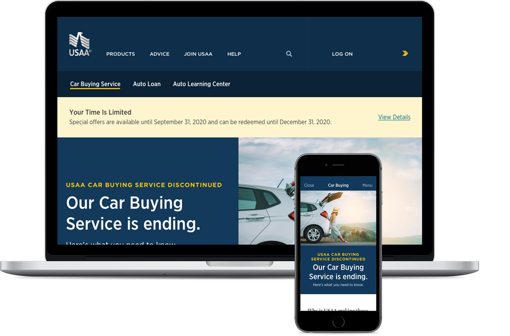 The Car Buying Service worked with business, IT, and design to schedule a nine month sunset on frontend experiences and backend processes.