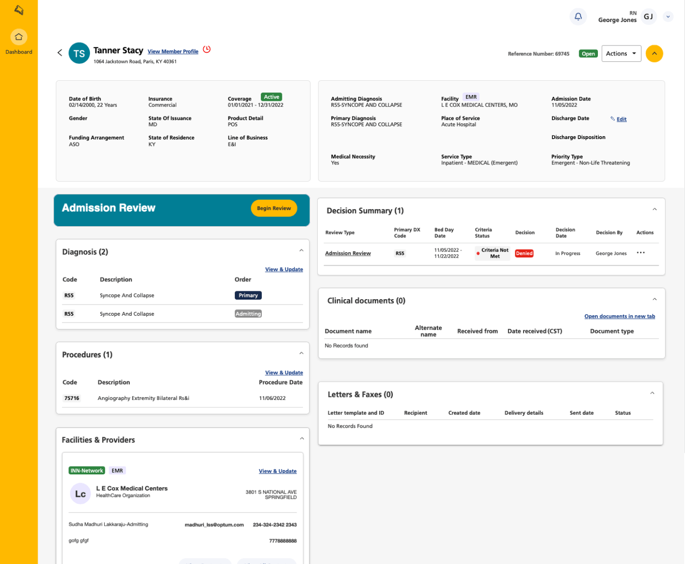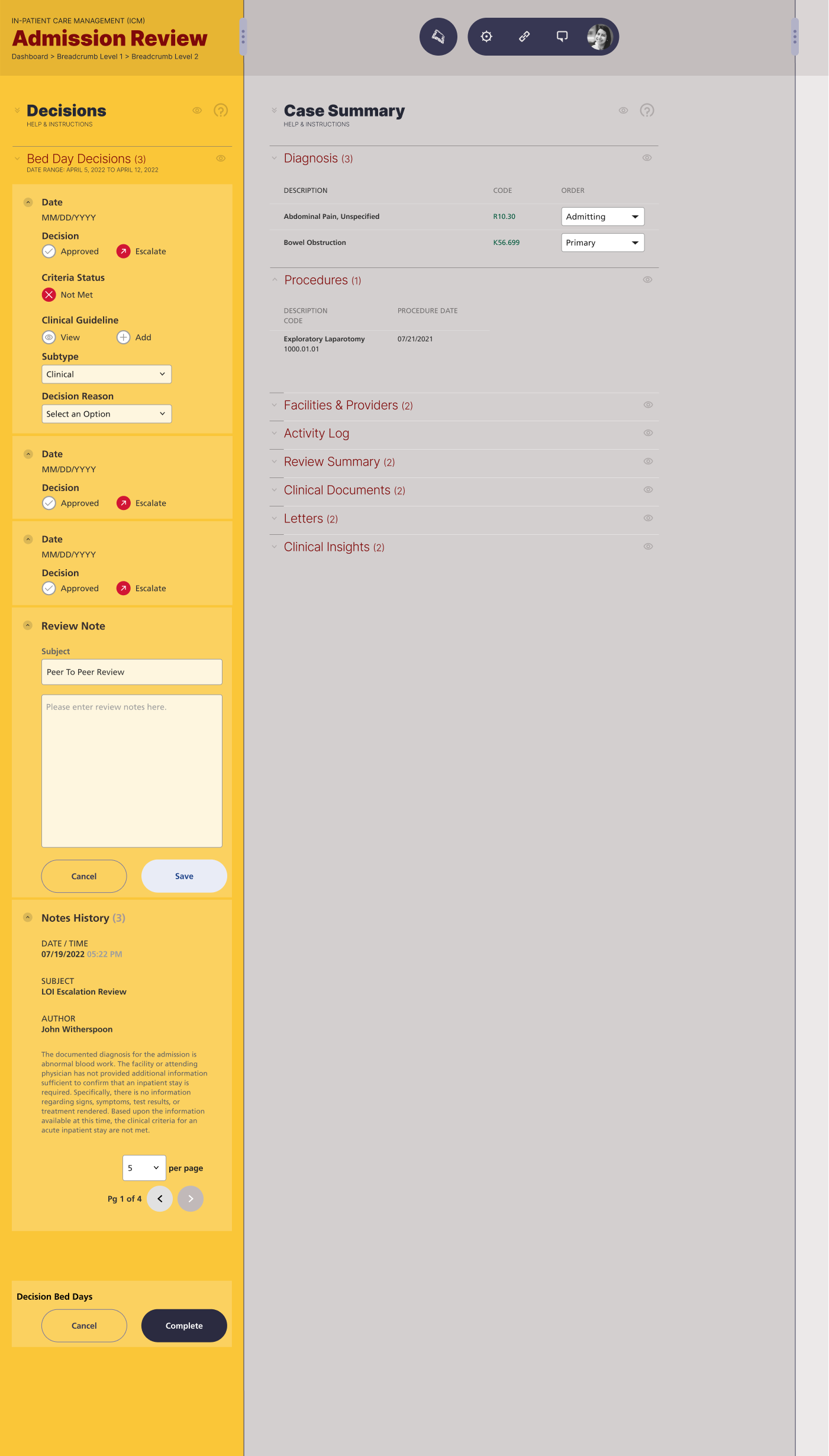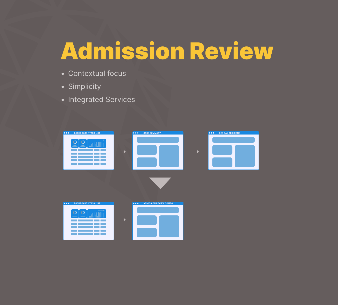 Our team was responsible for creating human-centered task flows for Admission Reviews, Concurrent Reviews, Peer-to-Peer Reviews, and Prior Authorization. I was responsible for strategic and systems thinking for end-to-end workflow.