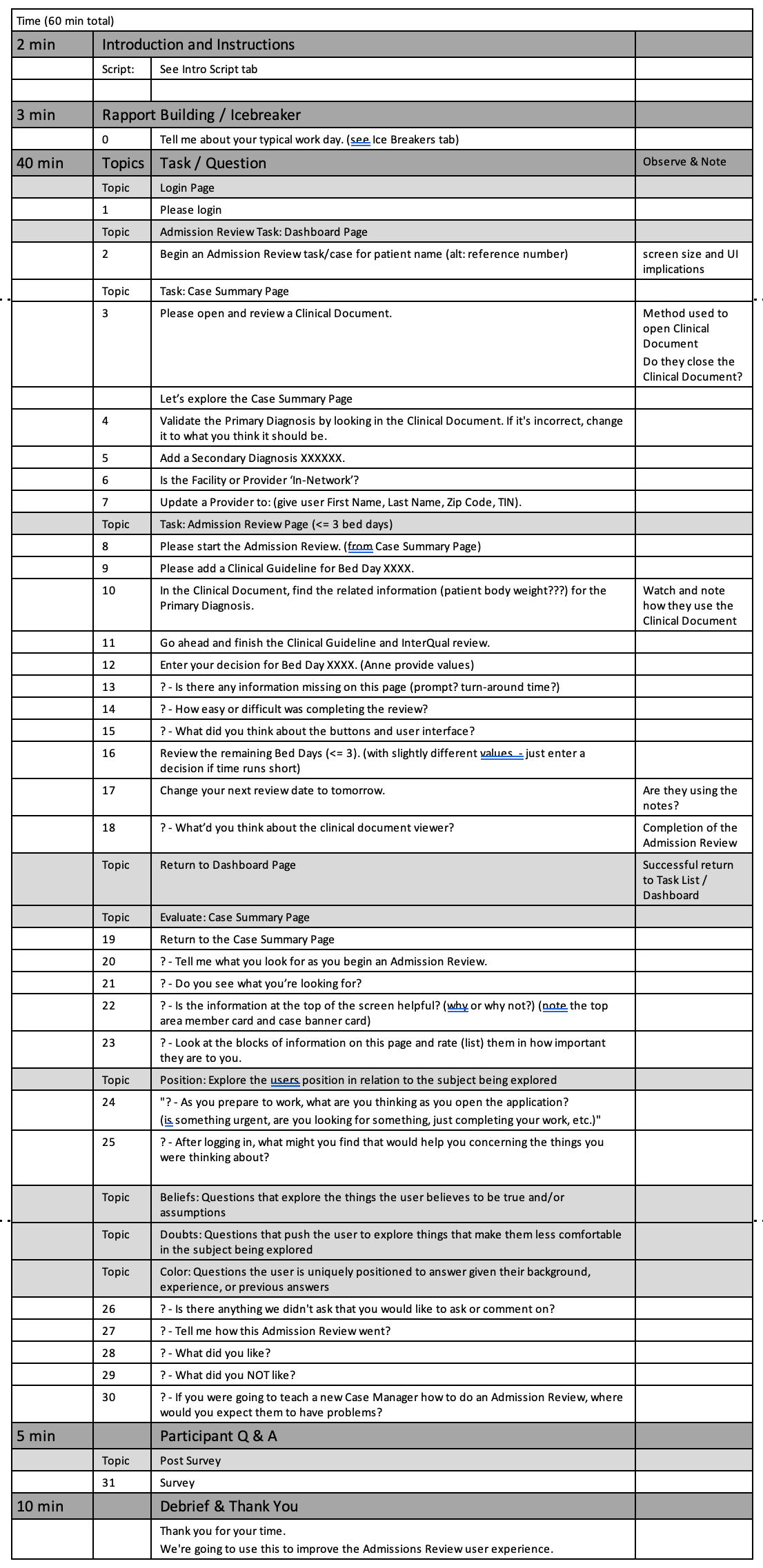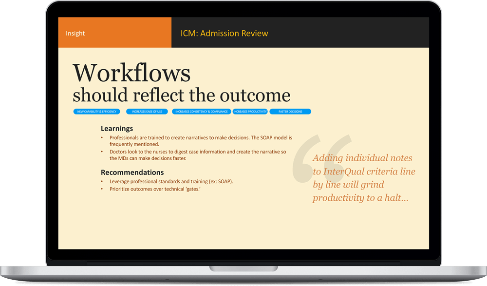An Admission Review is an In-patient Case Management task. A baseline user experience score enables future evaluations of features and hypotheses.