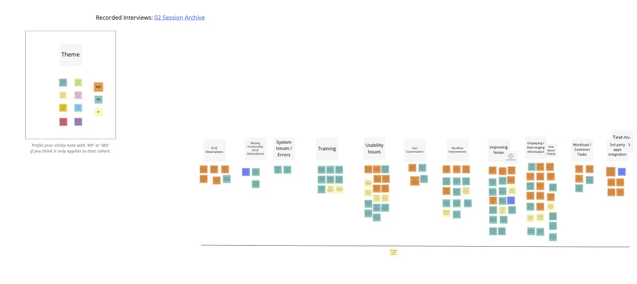 Generative and evaluative user research using contextual interviews of clinical workers including RNs and MDs.