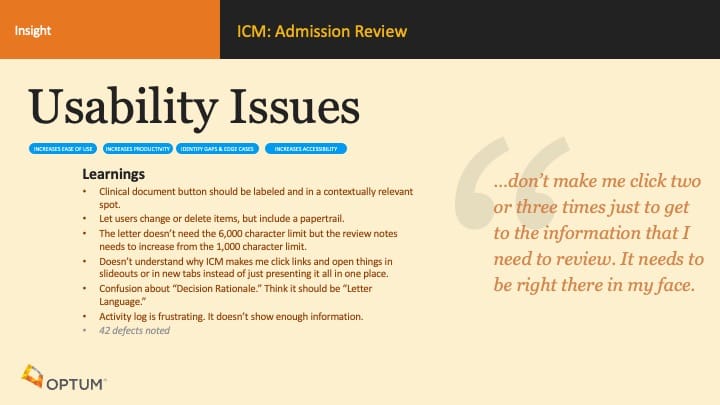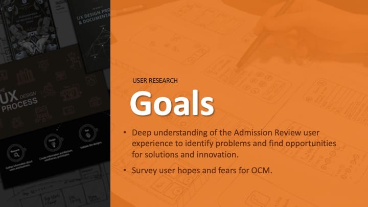 - Deep understanding of the Admission Review user experience to identify problems and find opportunities for solutions and innovation.