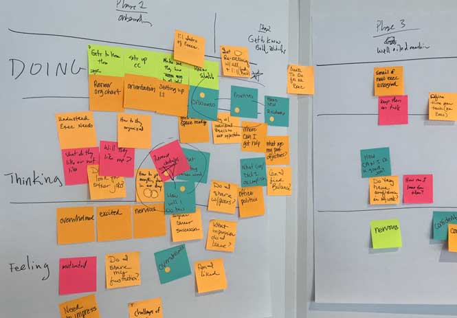 - Insight into what a member or employee does, thinks, and feels as they take an action in the current experience. This insight comes from conducting primary or secondary design research, observing people using your experience, or trying out the experience for yourself.