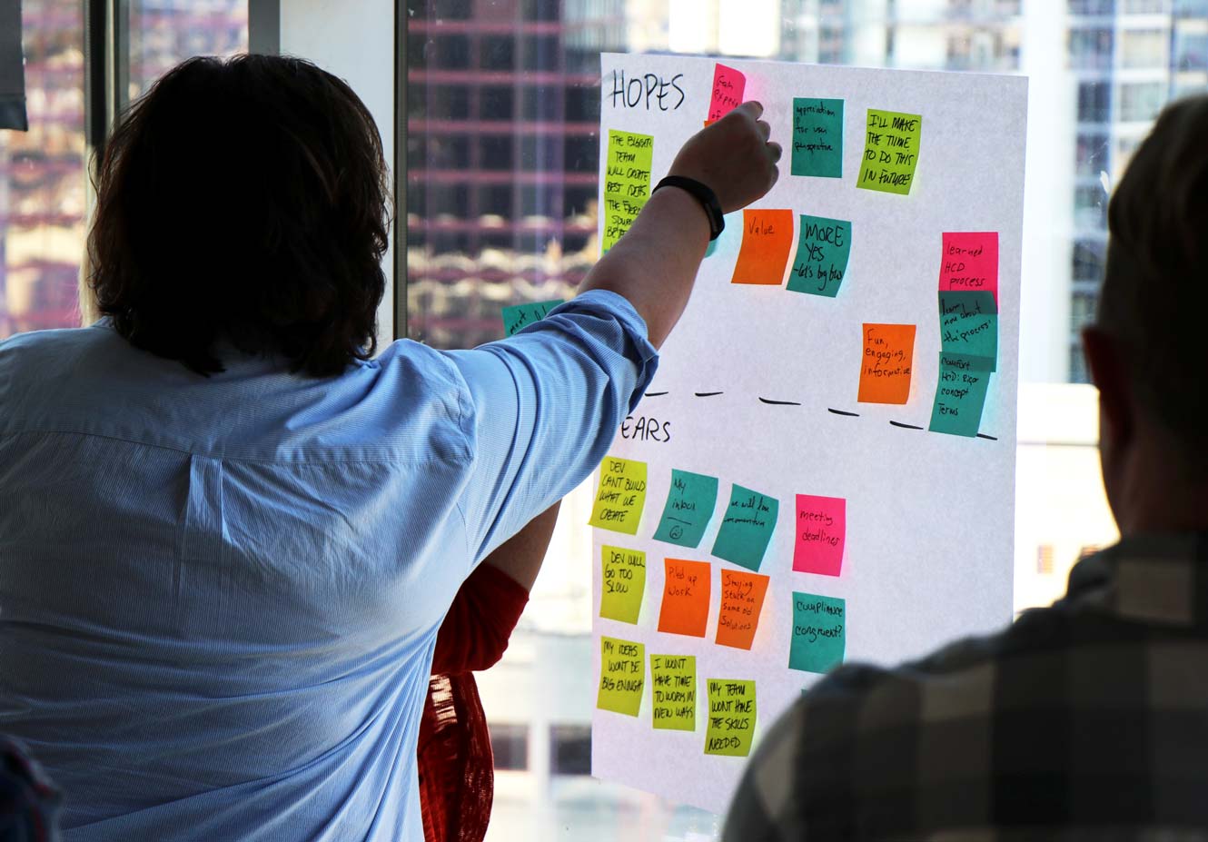 Divide a white board or large easel sheet into two sections: "Hopes" on top and "Fears" on bottom. This is where your team will plot their stickies.