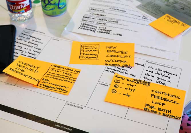 Think of an idea or solution that might address the pain point. Think about the big picture and strive to generate ideas that are broad and conceptual. Avoid ideas that are discrete or too focused on individual features.