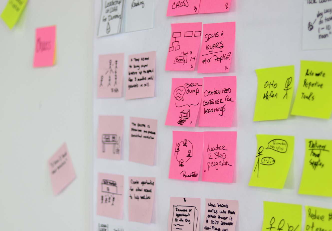 Post all the vignettes to the wall. First, review the ideas quietly, without discussion. Then, play back each idea to the whole team. Spend one minute per idea. Restrict your discussion to clarifying questions about what the idea represents.