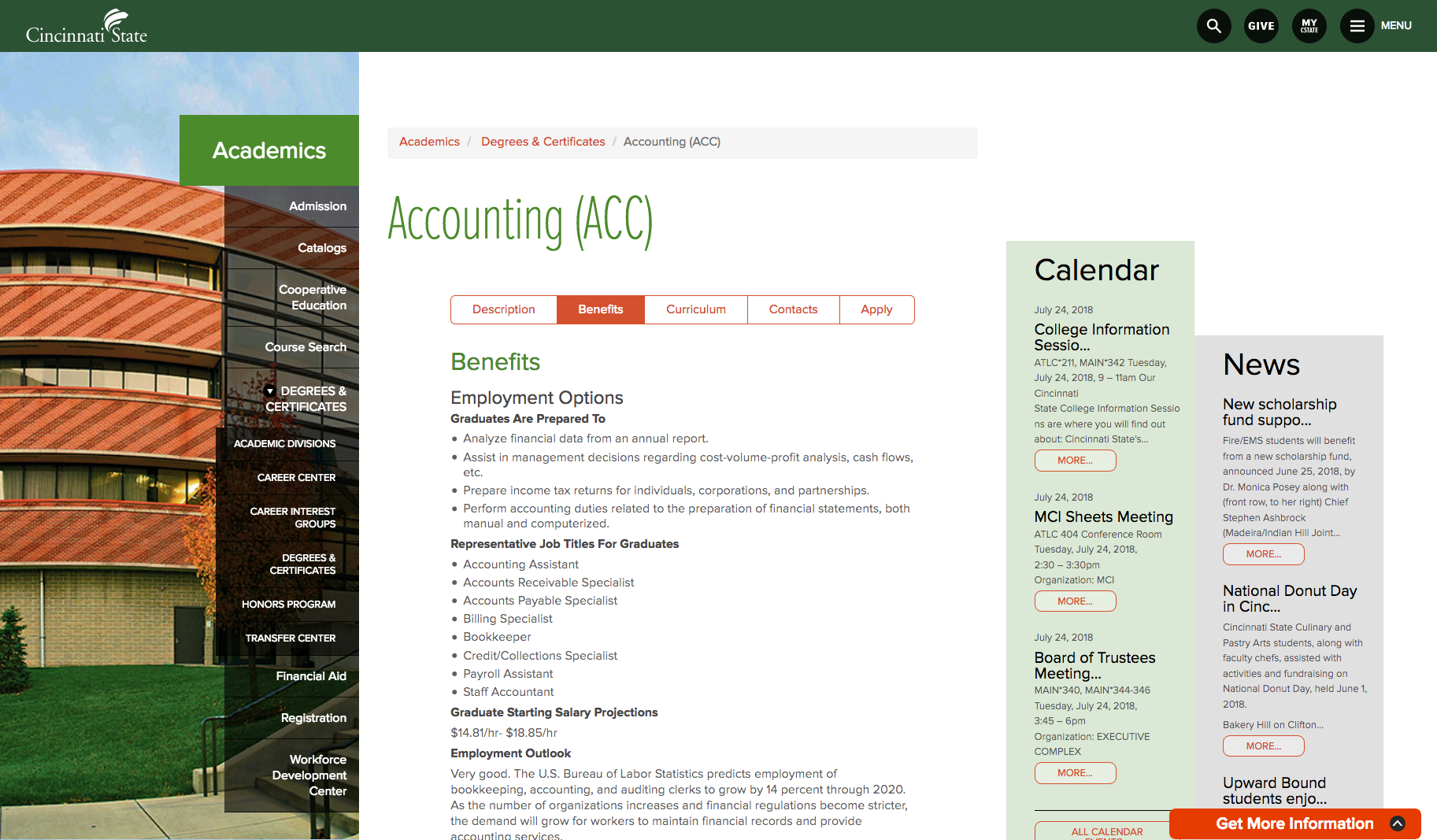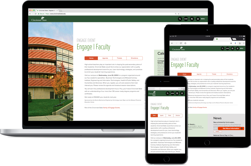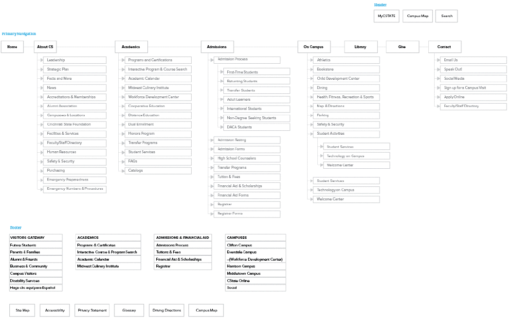 The main Cincinnati State website serves many business and user goals. It’s primary purpose is student recruitment. The website is also a portal to the college intranet (Blackboard) and a communication tool to stakeholders in the neighborhood, city, and region.